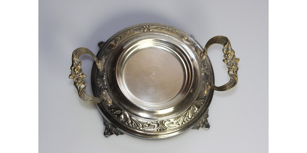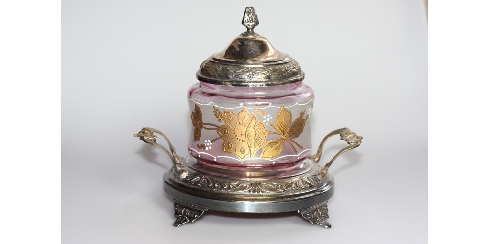 Posrebreno postolje i posuda od bojenog stakla sa tehnikom pečenog zlata.